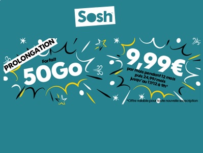 Bonne nouvelle ! La vente privée SOSH avec le forfait mobile 50Go au prix cassé de 9.99 euros est reconduite