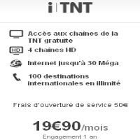 L' offre Tripleplay à 19.90€ par mois de Numéricable inclus une connexion internet jusqu'à 30 méga, le téléphone illimité vers les fixes de France et vers 100 destinations étrangères et pour la partie TV un accès aux 18 chaînes de la TNT + 4 chaînes de la TNT HD et les chaînes locales (selon les régions).