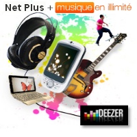 L'offre Net Plus Musique comprend une connexion Internet jusqu’à 20 méga, la télévision numérique jusqu'à 110 chaînes incluses, le téléphone illimité vers les fixes de France métropolitaine et vers plus de100 destinations ainsi que 1 heure d’appels vers les mobiles de tous les opérateurs. Cette offre est facturée 34,90€ pendant 2 mois puis 39.90€ par mois avec un engagement de 12 mois.