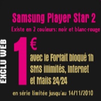 Universal Mobile associe également avec cette série limitée le mobile Player Star 2 à 1€ jusqu'au 14/11/2010. Ce téléphone portable 3G est disponible en blanc et rouge ou noir.