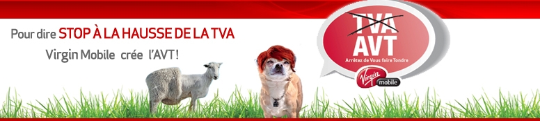 En effet, Virgin Mobile met en avant son AVT (Arrêter de Vous faire Tondre), pour dire stop à la hausse de TVA. Il informe donc que ses prix ne changent pas et qu'ils restent toujours aussi bas. Et précise donc que les personnes concernées par cette hausse chez un autre opérateur, elles ont 4 mois pour se libérer de leur opérateur actuel et rejoindre la tribu Virgin.