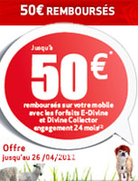 Il ne vous reste que quelques heures pour profiter d’un remboursement exceptionnel de 50€ chez l’opérateur Virgin Mobile. En effet, cette offre promotionnelle se termine aujourd’hui le 26 avril, il s’agit d’un remboursement à hauteur de 50€ pour l’achat d’un pack Virgin Mobile sous réserve de souscrire à un forfait Virgin Mobile de la gamme Liberty Plus, E-Divine ou Divine Collector avec un engagement de 24 mois. Le montant du remboursement ne pourra pas excéder le prix de vente total du mobile acheté.
