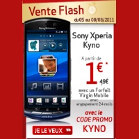 Virgin Mobile propose une vente flash sur l'achat du mobile Sony Ericsson Kyno entre le 05 et le 08 Août prochain avec la souscription simultanée à un forfait mobile avec un engagement de 24 mois.