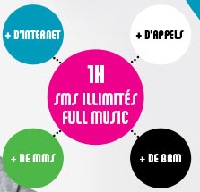 Remplacement de l'accès aux réseaux sociaux dans les forfaits 1H SMS illimités par l'option Full Music qui consiste à télécharger de la musique gratuitement depuis internet ou votre mobile et à obtenir des rencontres avec des artistes, des showcases privés, des places de concert ou des objets dédicacés à gagner grâce au jeu-concours mis en place chaque mois !