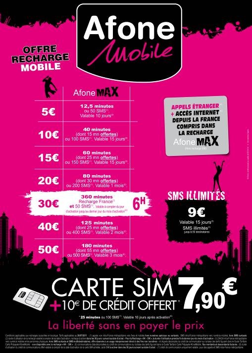 AfoneMobile, opérateur virtuel qui utilise le réseau SFR modifie en profondeur sa proposition en carte SIM prépayée, qui a été commercialisée sur Internet en Novembre 2009.