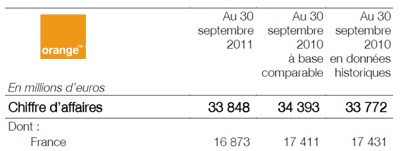 Le Groupe France Telecom-Orange a publié hier, 27 Octobre par le biais d'un communiqué de presse ses résultats à la fin du troisième trimestre de l'année 2011. Voici ce qu'il en ressort pour les résultats de la France.