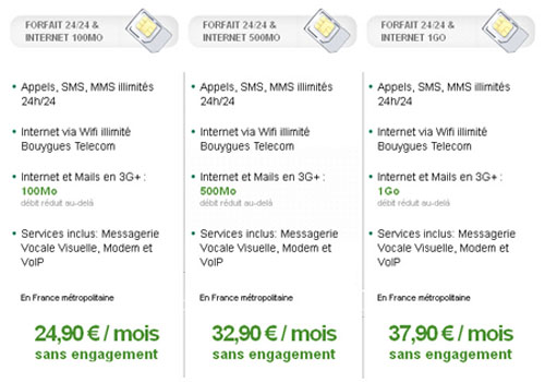 Avec les deux autres forfaits qui incluent déjà un accès Internet de 500 Mo à 1Go de volume data par mois, cet opérateur Low-Cost a décidé de baisser leur prix de 2€ par mois. Les clients actuels bénéficieront automatiquement de cette baisse de prix. Autre nouveauté, le nombre maximum de correspondants différents pour les appels illimités passera de 129 à 199 par mois.