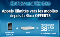 A l’approche des fêtes de fin d’année, le fournisseur Internet Bouygues Telecom lance aujourd’hui une édition limitée Ideo. Avec cette série limitée, vous disposez en plus des appels illimités vers les mobiles offerts depuis votre Bbox.