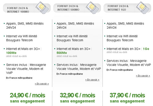 Autre nouveauté chez B&You le forfait 24/24 à 24.90€ par mois intègre désormais un accès Internet avec un volume data de 100 Mo par mois, au-delà le débit est réduit. De plus, l’usage modem est inclus dans ce forfait.