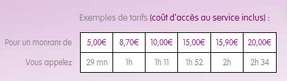 Pa exemple, si vous appelez 24 minutes, vous allez payer 4.38€ (24 X 0.12 cts = 2.88€ + 1.50€ = 4.38€).