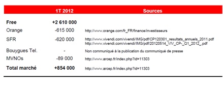 Les chiffres qui en découlent : 2,6 millions d’abonnés mobiles au 31 mars 2012, soit près de 4% de part de marché sur le mobile en 80 jours. Voici un aperçu des chiffres du marché présenté par le nouvel opérateur mobile :