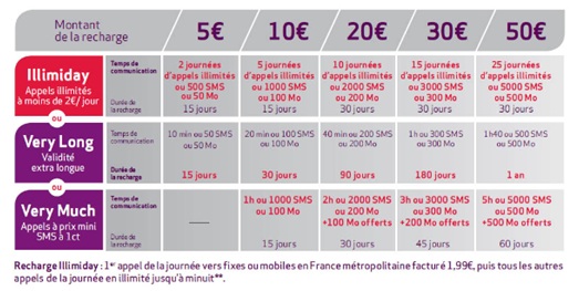 • Very Long : Pour disposer de durées de validité extras longues, jusqu'à 1 an avec la recharge 50€.