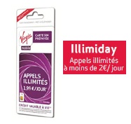 Après avoir bousculé le marché des cartes prépayées fin 2011 avec le lancement du crédit valable à vie, l'opérateur Virgin Mobile invente Illimiday : la première formule tarifaire permettant aux consommateurs d'appeler en illimité pour 1,99€ par jour seulement ! Une innovation qui illustre une fois encore l'engagement de l'opérateur à challenger le marché en favorisant l'accessibilité de la téléphonie mobile au plus grand nombre.