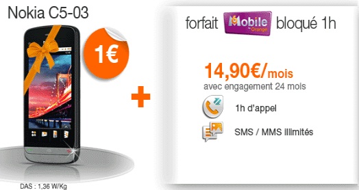 La 1ière offre concerne le Nokia C5-03. Ce mobile est un smartphone simple, mais très complet. Il est tactile et n'offre pas moins toutes les fonctionnalités d'un smartphone évolué et une réelle expérience numérique. Il est sous OS Symbian S60, il a un appareil photo de 5 Mégapixels et une carte 2Go + OVI Carte est fournie.