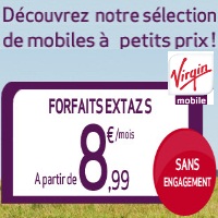 Jusqu’au 07 juin prochain, Virgin Mobile met en place une opération spéciale pour toute souscription à un forfait Extaz S sans engagement, l’opérateur baisse les tarifs de certains mobiles de 10€. Vous pouvez ainsi acquérir un nouveau forfait Extaz S à partir de 8,99€/mois avec un mobile à partir de 19,99€.