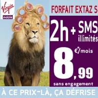 Virgin Mobile a lancé depuis quelques mois la gamme Extaz. Pour moins de 15€, l’opérateur vous fait profiter de forfaits avantageux comme par exemple le forfait Extaz S 2h à 8,99€/mois et le forfait bloqué Extaz S 2h à 12,99€.