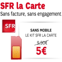 Lors de la souscription à la carte prépayée SFR, vous avez la possibilité de prendre la carte SIM seule à 5€ au lieu de 9,90€ (exlu Web) ou de prendre un pack avec une carte SIM et un téléphone mobile à partir de 19,90€.