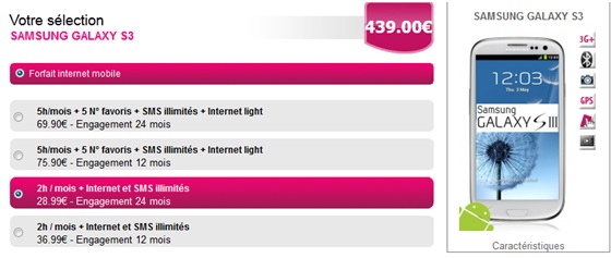 Du nouveau chez l'opérateur AfoneMobile, le tout dernier Smartphone Samsung GALAXY S3 (blanc 16Go) est désormais disponible avec le forfait 2 heures + Internet mobile et SMS illimités facturé 28.99€ par mois sur engagement de 24 mois ou 36.99€ sur engagement de 12 mois.