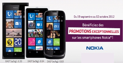 Plus que quelques jours pour profiter des remises actuelles sur la gamme Nokia chez Virgin Mobile. En effet, l’opérateur mobile propose du 19 septembre au 02 octobre prochain des promotions exceptionnelles sur les Smartphones Nokia avec la souscription simultanée à un forfait Extaz avec un engagement de 24 mois. Les mobiles concernés sont le Nokia Lumia 610 disponible en noir ou blanc, le Nokia Lumia 800 disponible en noir ou blanc et le Nokia Lumia 900. Voici le détail des remises et tarifs des forfaits mobiles associés.