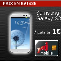 Profitez dès à présent du meilleur tarif pour l’achat du Samsung Galaxy S3 chez NRJ Mobile. L’opérateur vous le propose à partir de 1€ (51€ - 50€ remboursés) avec un forfait mobile avec un engagement de 24 mois. Avec cette offre, NRJ Mobile propose le Samsung Galaxy S3 au prix le plus bas du marché.