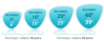 La recharge 4€ est valable 30 jours et permet de surfer pendant 2h sur Internet.
