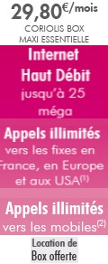 L’offre Coriolis Box Maxi Essentielle intègre les mêmes avantages que l’offre Coriolis Box Essentielle avec cette fois les appels en illimité vers les mobiles ainsi que vers les fixes de 30 destinations internationalesau prix de 29.80€.