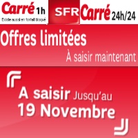 Bon plan sur deux forfaits que propose l'opérateur mobile SFR, en effet SFR propose une vente flash valable jusqu'au 19 novembre prochain, en effet vous profitez d’une remise allant de 5€ à 15€/mois pendant 12 mois respectivement pour la souscription à un abonnement Carré 1h00 bloqué ou non bloqué et le forfait carré 24h/24. Voici le détail de cette vente exceptionnelle: