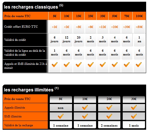 Orange propose une vente flash du 07 au 21 novembre prochain pour l’achat d’une carte prépayée proposée au tarif de 1.90€ au lieu de 7.90€. Cette formule est sans engagement avec un crédit de 5€ offert. Avec cette solution, vous rechargez quand vous voulez en achetant par carte bancaire ou en point de vente une recharge classique ou illimitée. Les recharges classiques sont disponibles pour un montant allant de 5 à 100€ et les recharges illimitées de 10 à 30€.