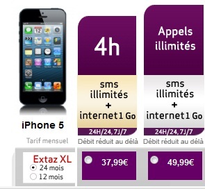 Virgin Mobile prolonge la remise pour l’achat de l’iPhone 5 jusqu’au 04 décembre prochain. Vous profitez d’une réduction immédiate de 50€ pour l’achat de l’iPhone 5 avec la souscription simultanée à un forfait Extaz XL avec un engagement de 24 mois. Grâce à la remise, le mobile est facturé à la commande 199.99€ et de plus jusqu’au 29 janvier 2013, Virgin Mobile vous offre 50€ en remboursement différé soit l’iPhone 5 à 149.99€. Les forfaits associés sont proposés à partir de 37.99€ en voici le détail.