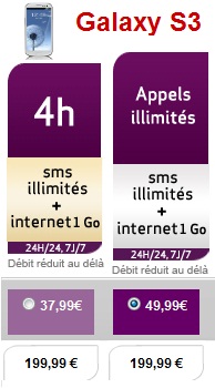 Virgin Mobile propose une offre de remboursement différé jusqu’à 150€ pour l’achat d’un Samsung Galaxy S3 avec la souscription simultanée à un forfait Extaz XL jusqu’au 29 janvier prochain. Le téléphone portable est au prix de 199.99€ soit 49.99€ avec le remboursement différé de 150€ avec le forfait Extaz XL 4h et Extaz XL appels illimités avec un engagement de 24 mois. Voici le détail des forfaits associés à cette remise exceptionnelle pour l’achat du Samsung Galaxy S3.