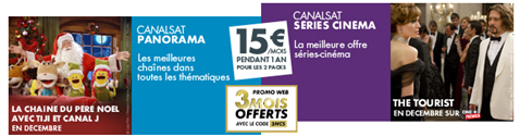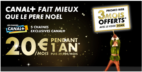 Canal + fête Noêl comme il se doit avec 3 offres promotionnelles qui peuvent vous permettre d'économiser jusqu'à 687.60€ sur une année d'abonnement. Alors c'est le moment de se faire plaisir ou de faire plaisir à son entourage. Voici les détails des offres allant du 06/11/2012 au 26/12/2012 :