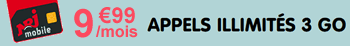 Forfait illimité | 19,99€ | Illimités vers les fixes et mobiles en France, Alaska, Canada, Etats Unis, Hawaï et vers les fixes de plus de 40 destinations | Illimités | jusqu'à 3Go (débit réduit au-delà) | 569€ | 808,88€ | ||