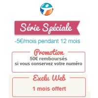 Concernant les promotions, vous bénéficiez d’une remise de 5€ sur tous les forfaits mobiles avec engagement de 12 ou 24 mois et également sur les offres version Eco avec engagement de 12 mois ou sans engagement du 14 février au 24 Mars 2013.