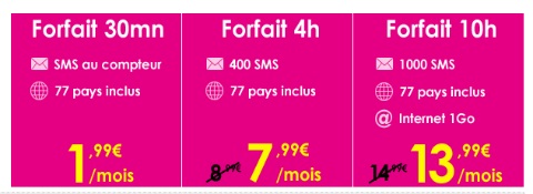 -Le forfait 30 min est au tarif de 1.99€ avec 30 min de communications par mois.