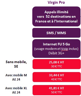 Ce forfait est disponible pour les professionnels à partir de 25.08HT sans engagement.