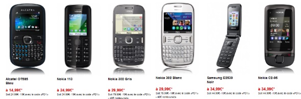 Virgin Mobile propose une remise de 10€ pour l’achat de l’Alcatel OT 585, du Samsung E2530, du Nokia 113, du Nokia C2-05 et du Nokia 302 avec la souscription simultanée à un forfait sans engagement. Pour bénéficier de la remise, il suffit d’indiquer lors de la commande le code promo « PSY ».