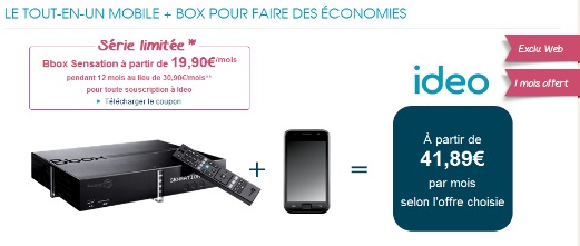 Voici un rappel des offres IDEO de Bouygues Telecom qui se compose d’une BOX et d’un forfait mobile :