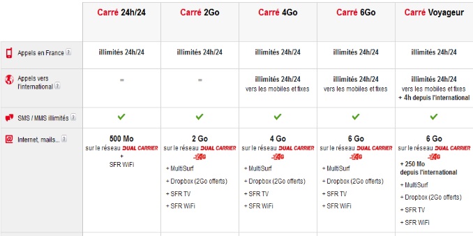 Les forfaits 4G disponibles chez SFR sont les suivants :