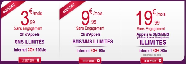 Rappel des autres forfaits IDOL S sans engagement de Virgin Mobile :