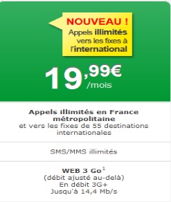 -Appels illimités vers les fixes et les mobiles en France ainsi que vers les fixes de 55 destinations.