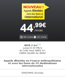 NRJMobile qui utilise le réseau de l’opérateur SFR, vient d’ajouter les appels illimités vers les fixes de 55 destinations internationales avec le forfait Woot 24/24 sans engagement, le forfait Ultimate Speed Smartphone et le forfait Ultimate Speed 24/7. Vous profitez désormais des appels vers les fixes et les mobiles en France et vers les fixes d’Europe, DOM, Etats-unis, Chine, Maroc… à partir de 19.99€.