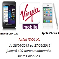 Virgin Mobile vient de mettre à jour ses offres mobiles et lance les offres Famille&Co et en exclusivité la première offre associant un forfait sans engagement à un Smartphone avec une option à 4€ par mois pendant 24 mois. De plus l’opérateur propose à chaque nouvelle période commerciale des offres de remboursement pour l’achat d’un mobile avec un forfait avec un engagement de 24 mois. Les remises actuelles sont valables du 26 juin au 27 Août prochain et concerne différents modèles tels que l’iPhone 5, iPhone 4, Samsung S4, Blackberry Z10 ou encore le Galaxy S3 mini…