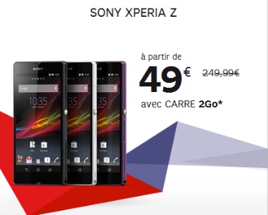 SFR met en avant jusque ce soir minuit le Sony Xperia U et le Xperia Z avec la souscription à un forfait Carré de SFR avec un engagement de 24 mois. Le Sony Xperia U est proposé à 1€ a lieu de 49.99€ avec un forfait carré 24/24 et le Sony Xperia Z est à 49€ au lieu de 249.99€ (149.99€ à la commande et 100€ différé) avec un forfait Carré 2Go.