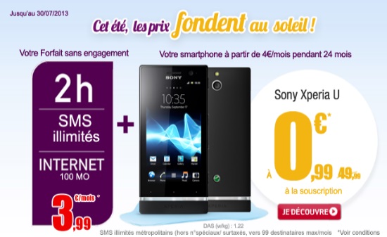 -Le Sony Xperia U est à 0.99€ soit 49.99€ - 20€ avec le code promo « SUMMER » - 30€ d’ODR Sony