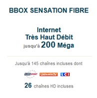 L'offre Bbox Sensation fibre offre désormais jusqu'à 200 Méga de débit, sans supplément de prix (37,90€/mois).