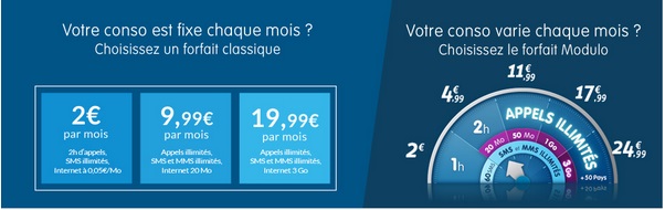 Prixtel vient de modifier ses offres mobiles, le forfait modulo est toujours disponible avec quelques changements. Pour rappel, Modulo est un forfait qui s’ajuste chaque mois en fonction de votre consommation sur 5 paliers à partir de 2€ par mois jusqu’au forfait illimité à 24.99€. Votre consommation est fixe tous les mois, Prixtel lance les forfaits classiques à partir de 2€ pour 2h d’appels au forfait illimité à 19.99€. Voici tous les détails des nouvelles conditions de l’offre modulo et les nouveaux forfaits classiques chez l’opérateur :