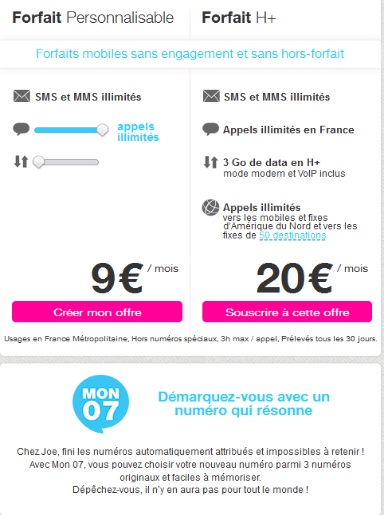 A l’occasion de son premier anniversaire, Joe Mobile lance un nouveau service Mon07 qui vous permet de choisir un numéro parmi une sélection de numéros originaux et faciles à retenir. Pour rappel, Joe Mobile est un opérateur Low Cost qui utilise le réseau SFR et commercialise des offres mobiles sans engagement à partir de 5? par mois. Toutes les formules chez l’opérateur sont bloquées avec aucun risque de dépassement et pour l'accès à Internet vous profitez de la H+.