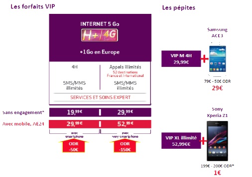 La gamme VIP vous permet de surfer en H+ et de profiter de Smartphones 4G à prix canon :
