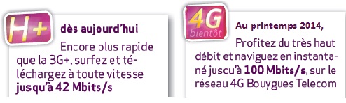 Deux forfaits mobiles avec ou sans engagement avec le réseau H+ dès à présent et avec la 4G dès le printemps 2014. Vous profitez des appels illimités en France et vers 52 destinations internationales ou 4h d’appels par mois en fonction du forfait. Les services communs aux deux offres sont les SMS et MMS illimités, un accès Internet avec 5Go de volume en France et 1Go en Europe et les services et soins Expert.