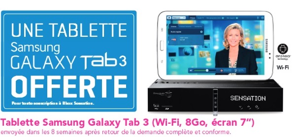 Pour profiter de la tablette offerte, vous devez souscrire à une offre Bbox Sensation ou Bbox Fibre entre le 18 novembre 2013 et le 05 janvier 2014.